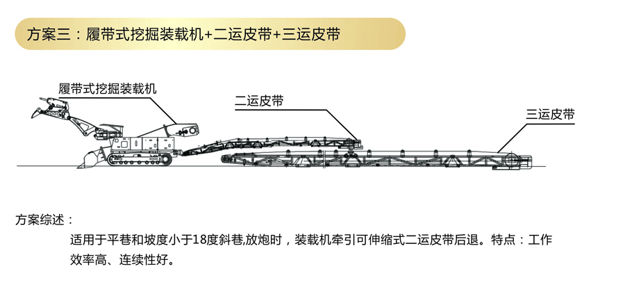 方案三:履帶式挖掘裝載機(jī)+二運(yùn)皮帶機(jī)+三運(yùn)皮帶機(jī)